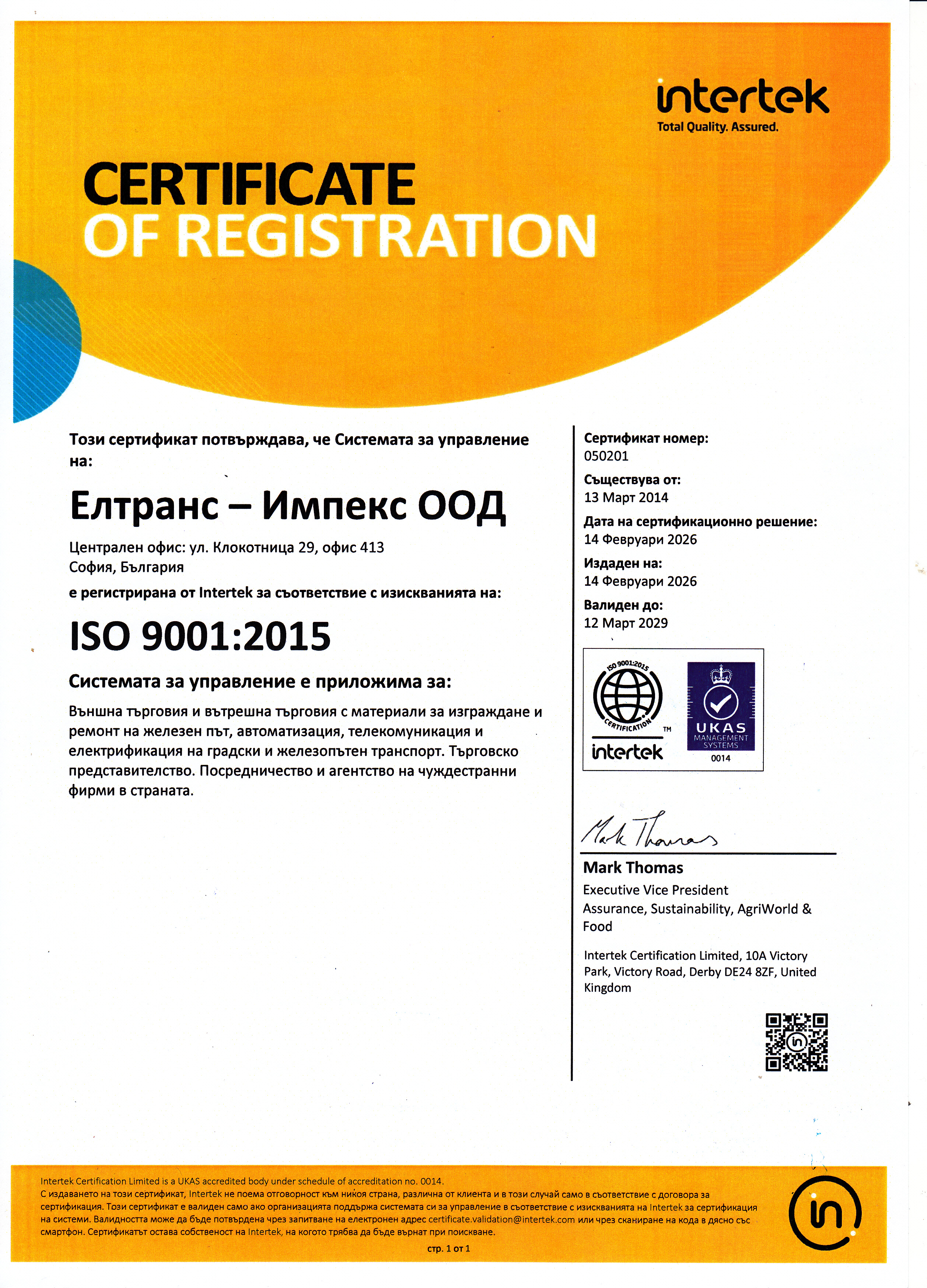 В условията на динамично променящата се пазарна среда в национален и глобален план, както и приближаващото присъединяване на България в Европейския съюз и с цел повишаване на конкурентноспособността на фирмата ни, разработихме, въведохме и непрекъснато усъвършенствуваме система за управление на качеството EN ISO 9001:2000.